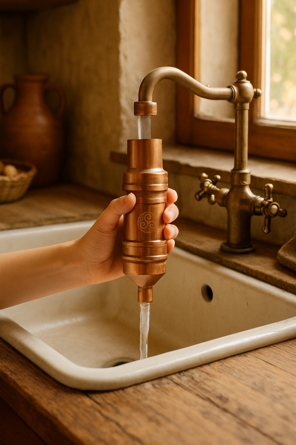 • Precision-engineered copper vortex tube for dynamic liquid structuring